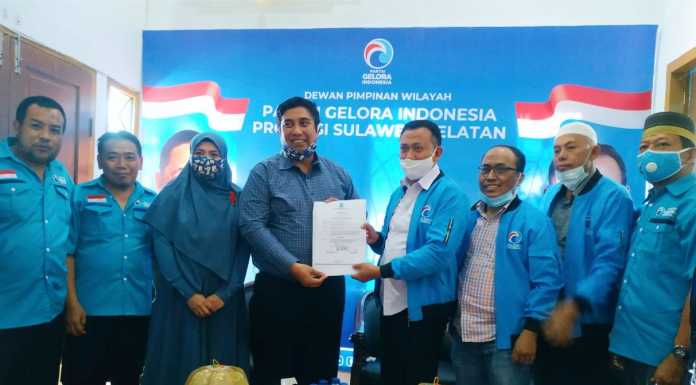 Bertempat di Kantor DPW Partai Gelora Sulsel jalan Pelita Tiga No.8, Masale, Kecamatan Panakkukang, Kota Makassar  dipimpin langsung oleh Ketua DPW Partai Gelora Sulsel Samsari Kitta yang saat ini juga menjabat Bupati Takalar diserahkan SK dukungan, Rabu, 26 Agustus 2020.